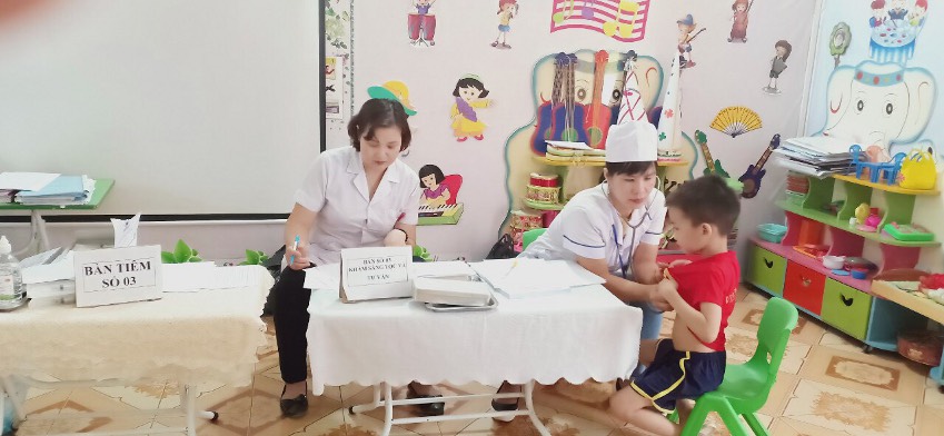 Nhà trường đã phối hợp với các đơn vị y tế, chính quyền địa phương tổ chức tuyên truyền, cung cấp kiến thức cho giáo viên về lợi ích của việc tiêm bổ sung vắc xin phòng bệnh sởi – rubella để giáo viên tuyên truyền sâu rộng đến phụ huynh của trẻ với nhiều hình thức phong phú: thư điện tử, zalo, website của nhà trường. Nhà trường phối hợp với trạm y tế rà soát, lập danh sách trẻ cần tiêm theo lớp để tránh bỏ sót đối tượng tiêm chủng vắc xin sởi - rubella.