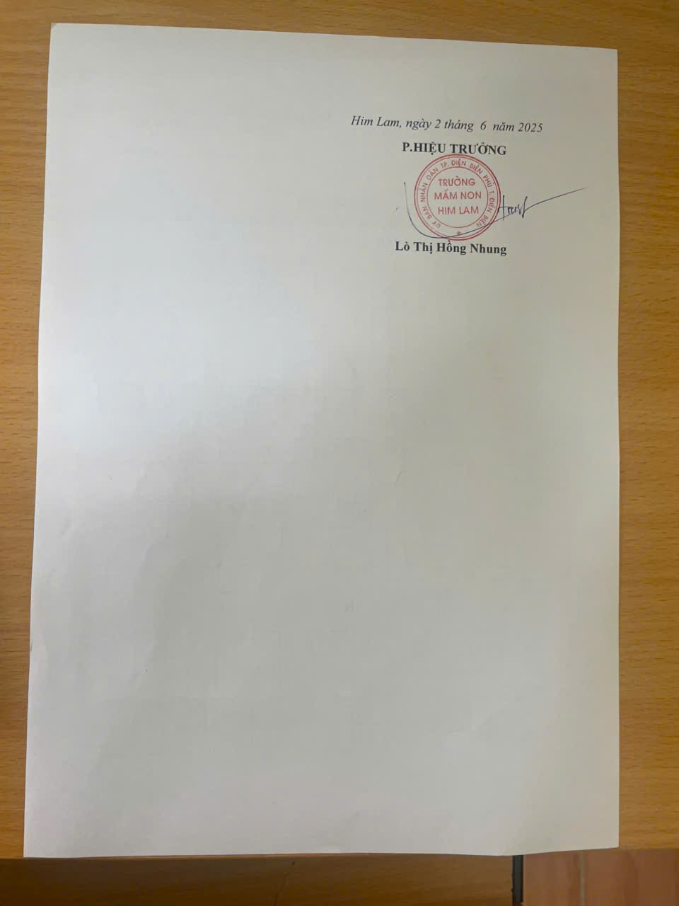 | Cơ quan ban hành | Trường mầm non Him Lam |