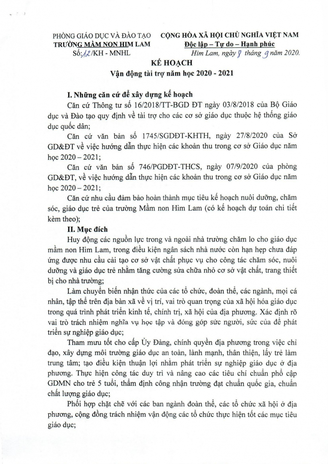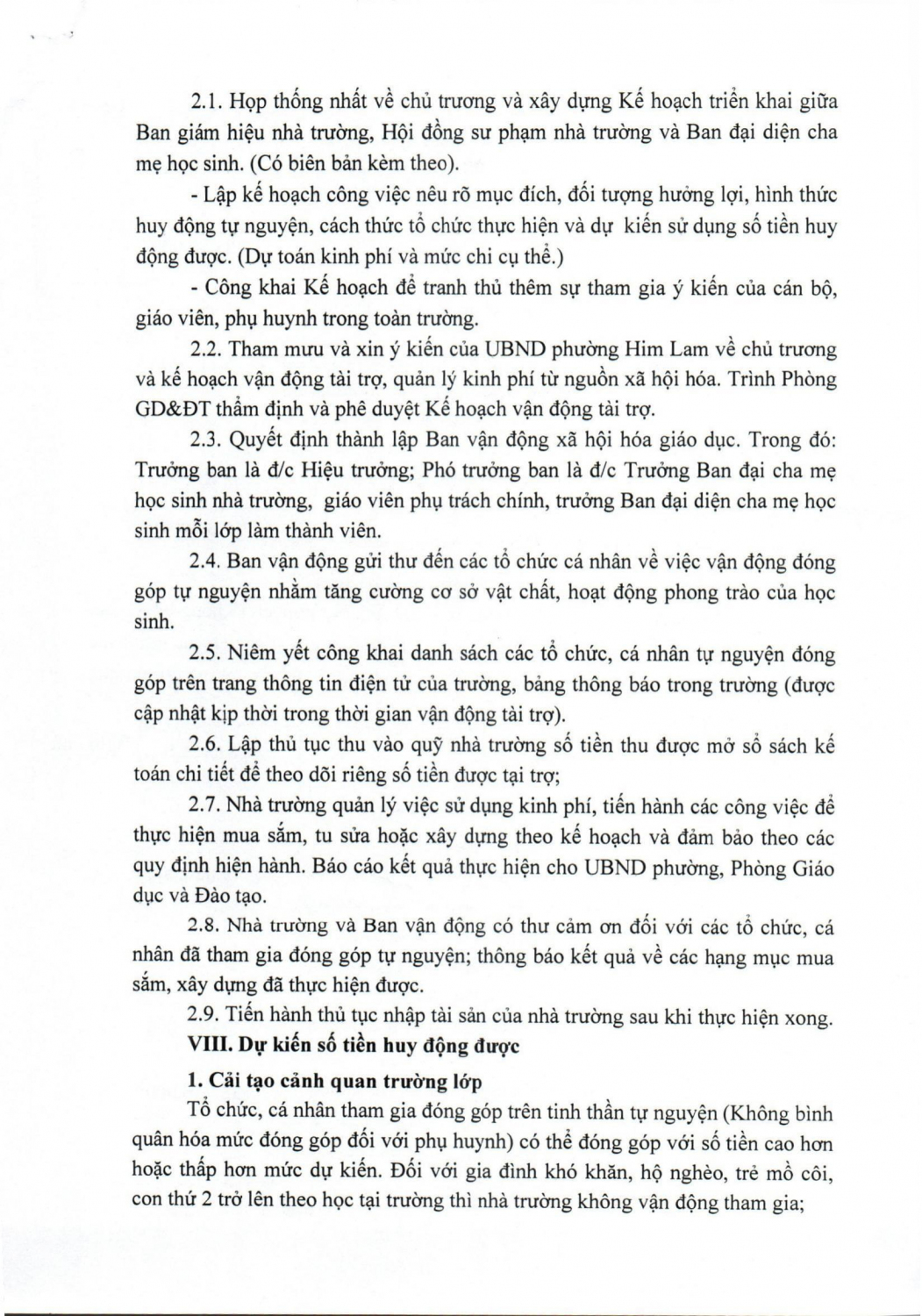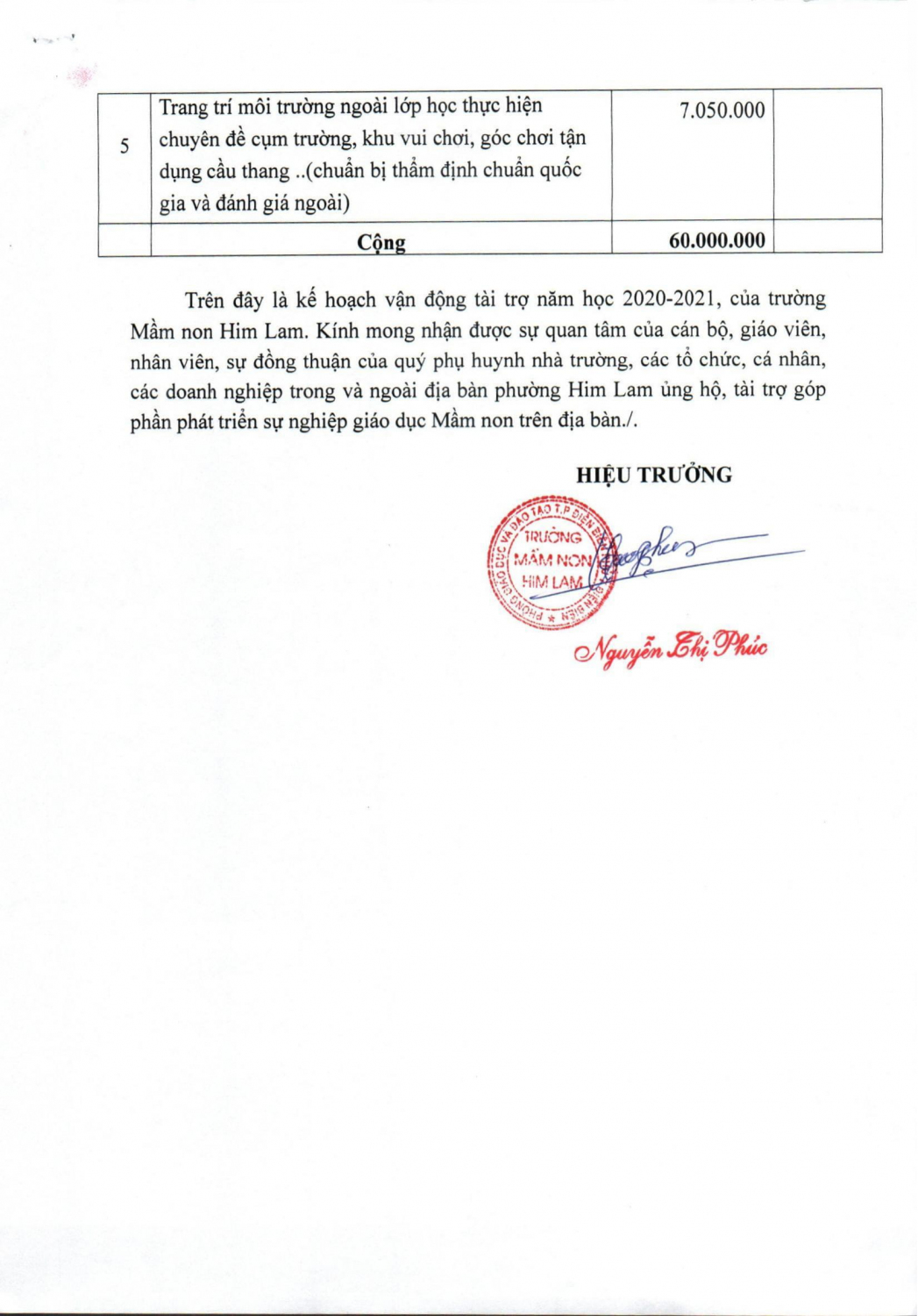 TRƯỜNG MẦM NON HIM LAM CÔNG KHAI CÁC KẾ HOẠCH VẬN ĐỘNG TÀI TRỢ