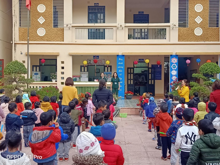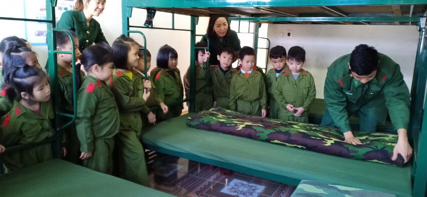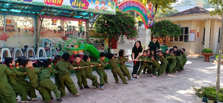 Nhà trường đã hưởng ứng đẩy mạnh các phong trào thi đua, đặc biệt là phong trào thi đua “Dạy tốt - Học tốt” các tiết dạy được đầu tư về nội dung và hình thức, cũng như về phương pháp chuyên môn. Đặc biệt giáo viên tổ chức tuyên truyền tốt tới trẻ về ngày lễ trọng đại này qua các hoạt động phong trào như: Thể dục sáng, sinh hoạt tập thể, những giờ học trên lớp….Tích cực trao đổi với phụ huynh về nội dung chương trình giáo dục mầm non, làm nổi bật chủ đề của tháng của tuần (Ngày hội của các chú bộ đội)…..