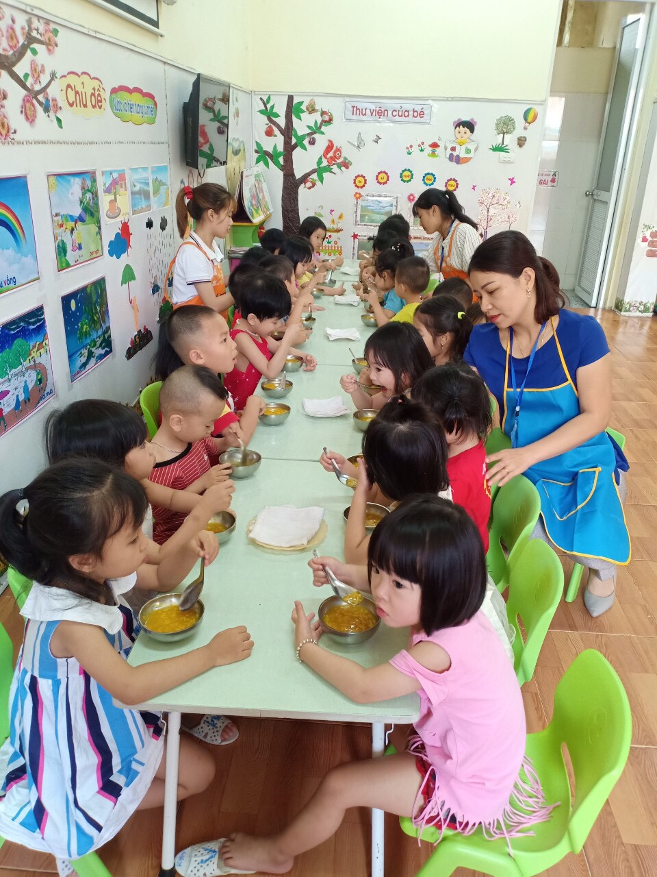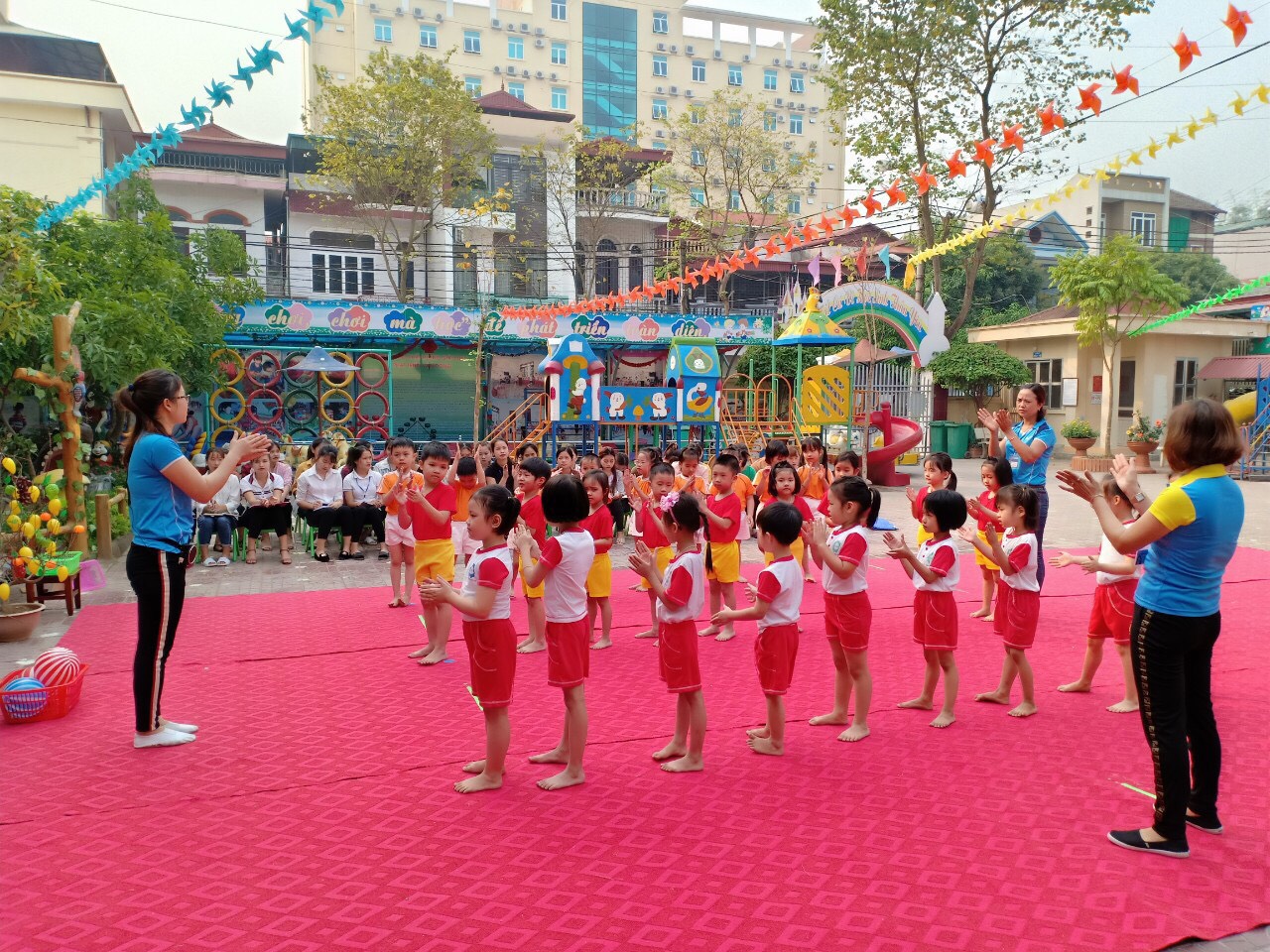 Sáng ngày 11/4/2019 nhà trường đã tổ chức 2 tiết mẫu thuộc lĩnh vực PTNT và PTVĐ, theo hướng lấy hoạt động của trẻ làm trung tâm và tích hợp nội dung học tập và làm theo tư tưởng, đạo đức, phong cách Hồ Chí Minh đã làm nổi bật việc cho trẻ được tham gia hoạt động trải nghiệm…cho các em giáo sinh tham dự, học tập;