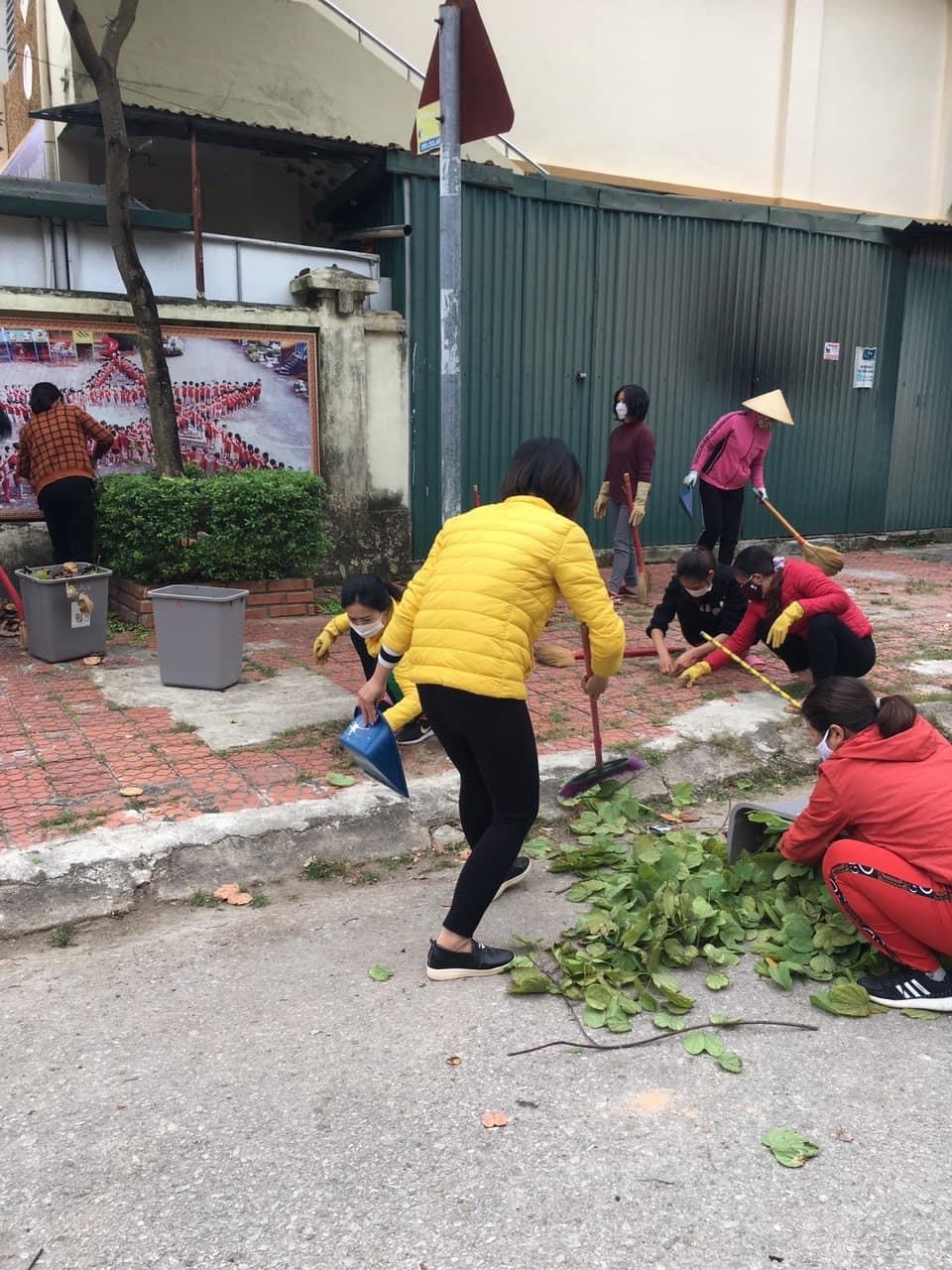 Với tinh thần quyết tâm đẩy lùi dịch bệnh, tạo một môi trường Sạch - Đẹp - An toàn, tập thể CBGV,NV dưới sự chỉ đạo sát sao của Ban giám hiệu nhà trường đã tham gia tổng vệ sinh trong và ngoài lớp học, phun khử khuẩn toàn bộ khuôn viên, các phòng ban, bàn ghế, lau chùi, đánh rửa, phơi khô đồ chơi ngoài trời, đặc biệt đồ dùng học tập và đồ chơi của trẻ tại lớp học.