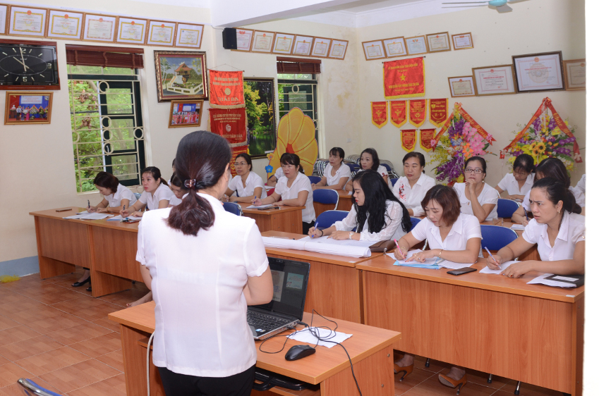 Tại buổi tập huấn CBGV, NV đã được tiếp thu rất nhiều nội dung quan trọng và bổ ích như: Biết được đặc điểm và các triệu trứng viêm đường hô hấp cấp tính, cách giám sát với trường hợp bệnh nghi ngờ, bệnh xác đinh, người tiếp xúc gần…Đặc biệt nắm được các biện pháp phòng bệnh không đặc hiệu như: Giữ vệ sinh cá nhân: rửa tay thường xuyên bằng xà phòng, tránh đưa tay lên mắt, mũi, miệng, môi trường sống: nhà ở, lớp học thường xuyên lau nền bằng chất tẩy rửa và dung dịch khử khuẩn, tăng cường không khí nơi làm việc, nhà ở, trường học; tăng cường sức khỏe bằng cách ăn uống, nghỉ ngơi, tập TDTT hợp lý, nếu hắt hơi hoặc ho phải che miệng, mũi, đến chỗ đông người phải đeo khẩu trang đúng cách, khi có biểu hiện của viêm đường hô hấp cấp tính phải đến ngay các cơ sở y tế để được thăm khám….