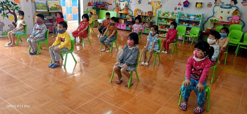 Để đảm bảo an toàn cho trẻ, ngay từ những ngày đầu đón trẻ trở lại trường nhà trường đã chuẩn bị đầy đủ trang thiết bị, vật tư y tế phục vụ công tác phòng dịch: máy đo thân nhiệt, dung dịch sát khuẩn, khẩu trang y tế….Vào đầu mỗi buổi học,  Ban Giám hiệu cùng giáo viên nhà trường đã triển khai các phương án đón học sinh từ cổng trường, đo thân nhiệt và hướng dẫn vệ sinh tay cho các trẻ bằng nước sát khuẩn, yêu cầu các bậc cha mẹ học sinh dừng tại cổng, không vào trong khuôn viên trường học. Nhắc nhở giáo viên thường xuyên hướng dẫn học sinh cách rửa tay theo 6 bước, kiểm tra sức khỏe, lau nền nhà, tay nắm cửa, đồ chơi, dụng cụ học tập và các đồ vật trong phòng học, phòng chức năng bằng các chất tẩy rửa thông thường như xà phòng hoặc các dung dịch khử khuẩn khác.