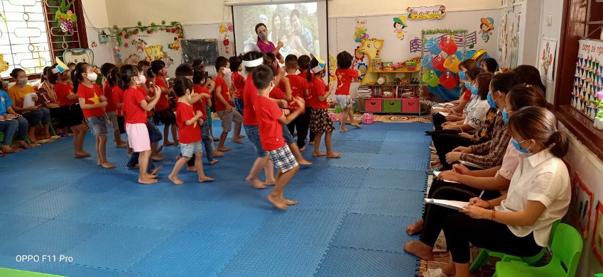 Đặc biệt nhà trường tổ chức cho các em dự giờ 2 tiết mẫu về lĩnh vực PTTC và PTNN, sau khi dự giờ các em được trao đổi, thảo luận, rút kinh nghiệm để các em có thêm kiến thức trong quá trình thực tập và giảng dạy trên lớp.